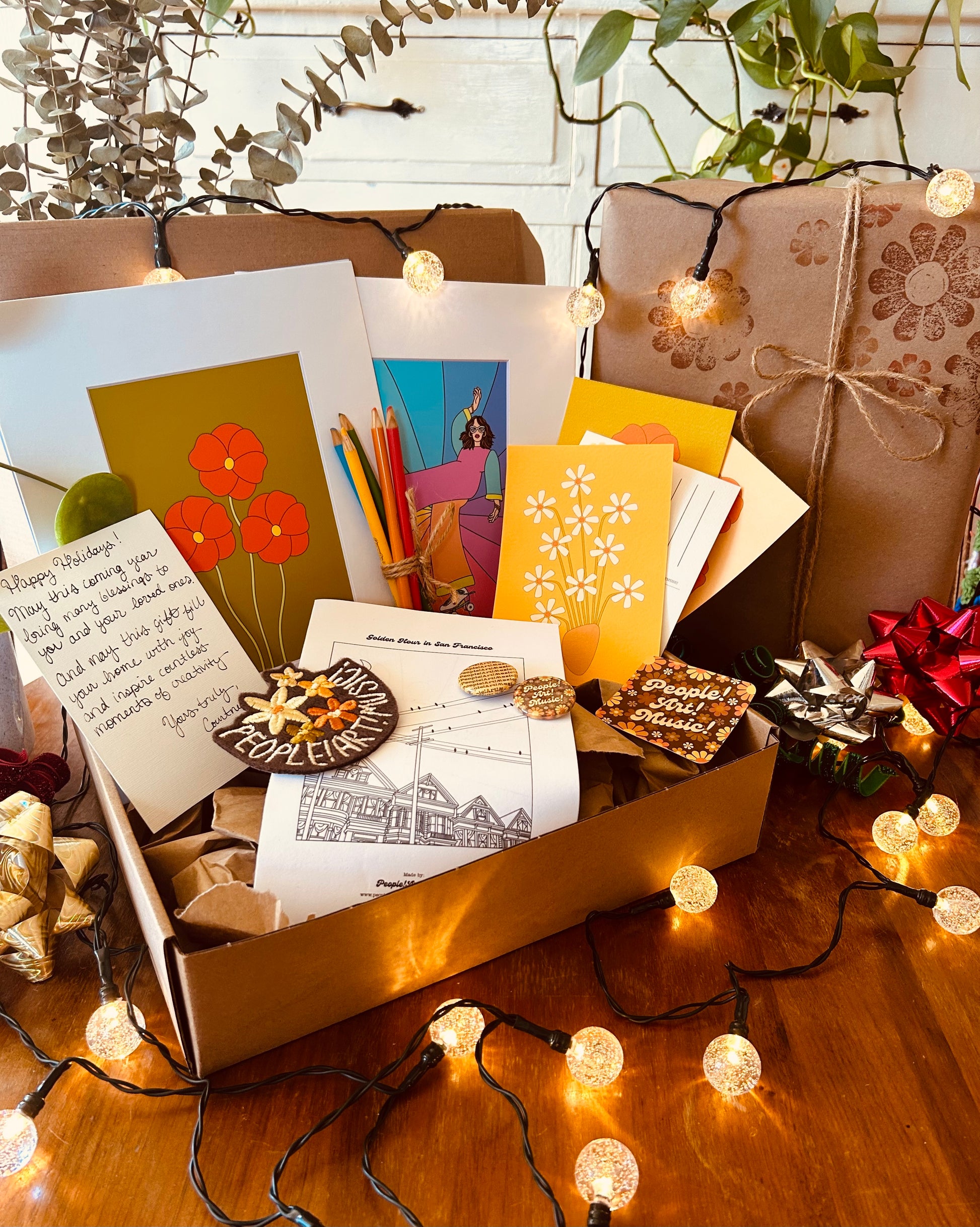 Gift comes wrapped and ready to give in custom PAM! wrapping paper. Once order is placed, please send personal message and choice in prints via email to courtney@peopleartmusic.com.
